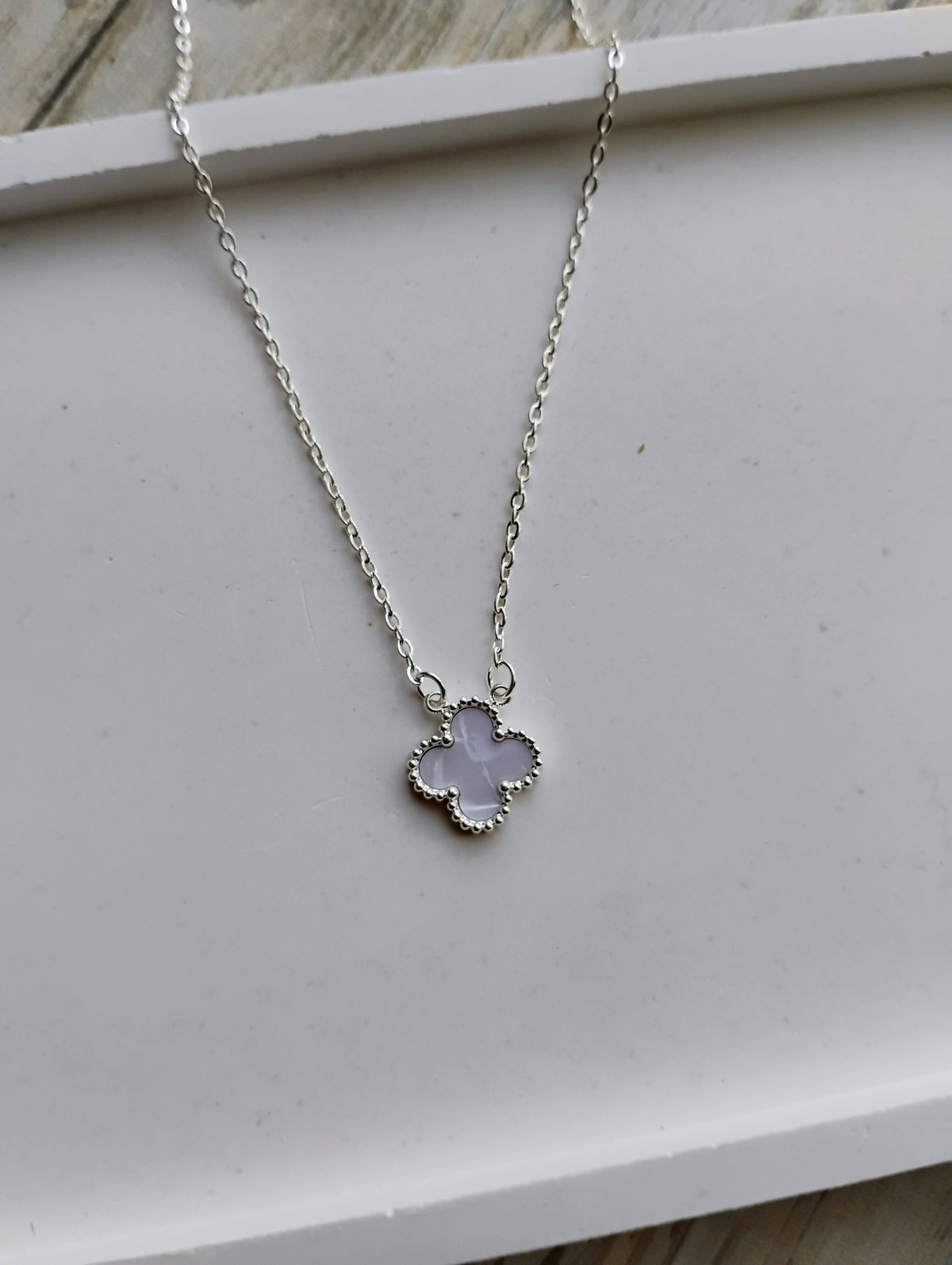 Collar trébol blanco nácar 45 cm